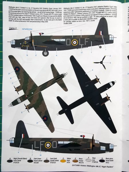 Jak zaznaczyłem powyżej opcji malowania jest sporo. Dwie z nich to maszyny z dywizjonów czechosłowackich, jedna brytyjska, stacjonująca w Egipcie, no i dwie z dywizjonów polskich. Pierwsza to klasyczne malowanie z 305 Dywizjonu Bombowego, dokładniej samolot SM E o własnej nazwie „Elżunia”, widniejący zresztą na boxarcie. Samolot ten latał później w jednym z dywizjonów czechosłowackich, o czym także możemy przeczytać w notatce zamieszczonej przy rzeczonym schemacie. Druga propozycja to samolot należący do 304 Dywizjonu Bombowego w malowaniu Costal Command. Polskie Wellingtony zanotowały sukcesy w walce z U-bootami, więc to właśnie malowanie jest jak najbardziej godne uwagi.