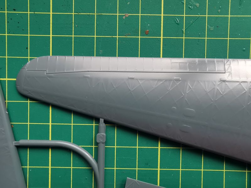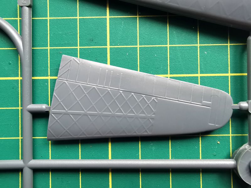 Kolejna wypraska to skrzydła i górne elementy stateczników poziomych. Co do faktury powierzchni także nie mam zastrzeżeń i ograniczę się tu jedynie do uwagi, że wszystkie powierzchnie sterowe zostały wykonane jako integralne elementy skrzydeł i usterzenia.
