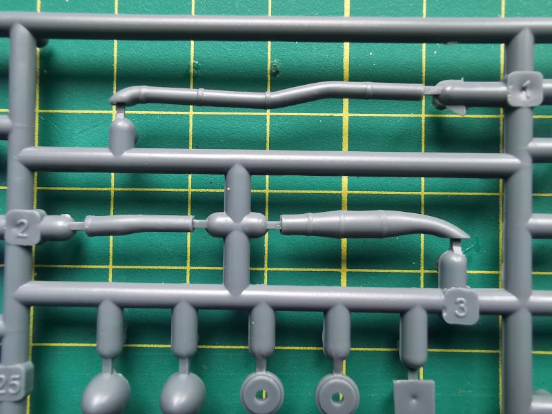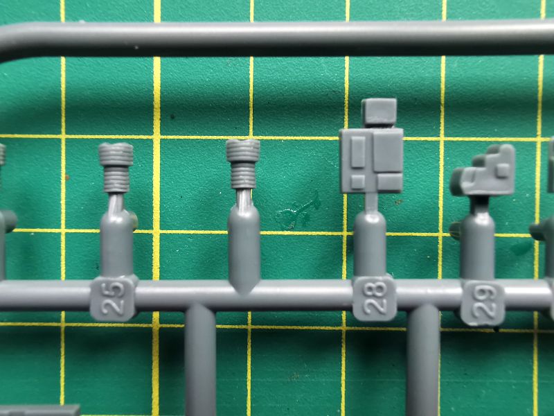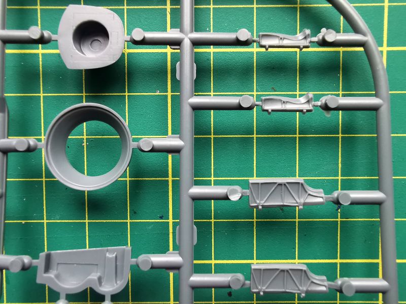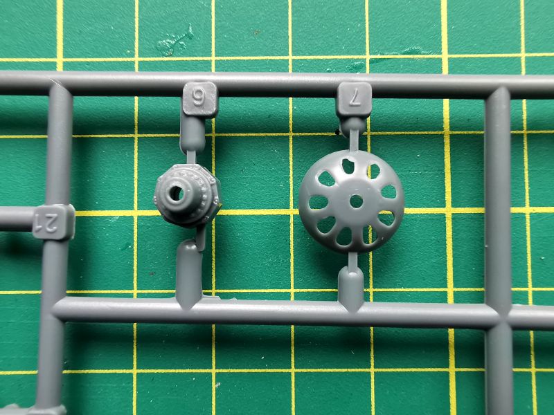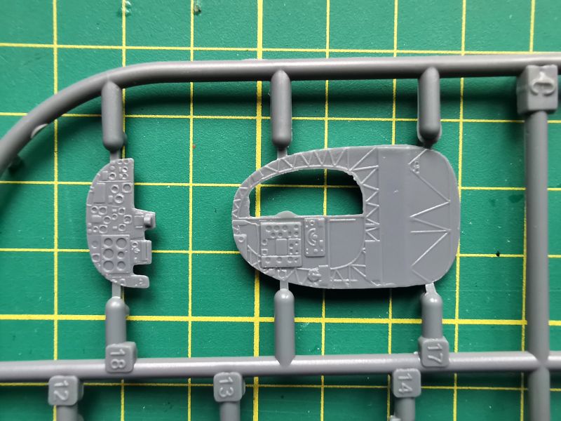 Zawartość kolejnej wypraski to podzespoły silników i podwozia głównego. Jest też trochę detali kabiny pilota. Co ciekawe, silniki zaprojektowano w podobny sposób, jak się to robi przy ich żywicznych zamiennikach. Cylindry to osobne elementy, które przyklejamy do bloków silników. Takie rozwiązanie ma też swoje zalety, bo łatwiej nam będzie z waloryzacją, jeżeli zdecydujemy się ją wykonać we własnym zakresie. Jakość wykonania drobnych detali jest niezła, biorąc pod uwagę technologię wykonania i czas w jakim powstawały. Będą oczywiście wymagać trochę pracy i obróbki, ale tragedii nie ma.