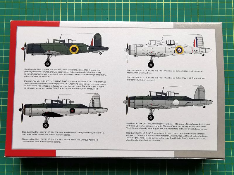 Ponieważ pierwowzór powstał jako adaptacja pokładowego bombowca nurkującego Skua, nietrudno się domyślać, że opisywany zestaw będzie miał sporo wspólnego z modelem tego właśnie samolotu. Pierwsze wydanie modelu Roca miało miejsce w 2009 r. teraz mamy do czynienia z drugim wznowieniem. Model zapakowano w niewielkie, otwierane z boku pudełko, na jego rewersie znalazły się boczne sylwetki z proponowanymi wariantami malowań.