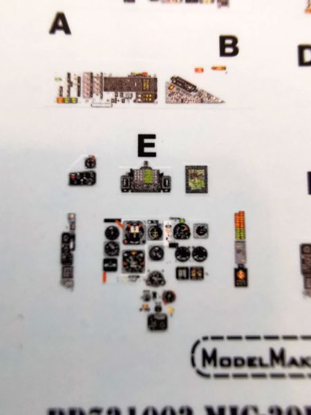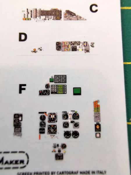Wiadomo, że ModelMaker to przede wszystkim kalkomanie. Jest to sztandarowy produkt kołobrzeskiego producenta, ten zestaw nie jest w tej kwestii wyjątkiem. W zestawie znajdziemy aż trzy arkusze kalkomanii, przy czym na manie największe wrażenie zrobił ten najmniejszy. To kalkomanie na tablice przyrządów i panele boczne w kabinie załogi. Starałem się zrobić zdjęcia maksymalnym przybliżeniem tak, żeby pokazać jak niezwykle szczegółowo je opracowano. Zawierają one nawet najdrobniejsze detale, w rysunek jest niezwykle wyraźny, wiernie odtwarzający wyposażenie prawdziwego samolotu. Z ich aplikacją też nie powinno być problemu, ponieważ druk zlecono włoskiej firmie Cartograf. Warto także zwrócić uwagę na nazwę i numer katalogowy. Tego typu kalkomanie pojawiły się także w modelu Su-22 i wcale się nie zdziwię jak się okaże, że stanowią one zalążek nowej linii produktów. Swoją drogą przy dzisiejszej jakości wykonania modeli wtryskowych, takie kalkomanie stanowiłyby ciekawą alternatywę do wydruków 3D czy tablic fototrawionych.