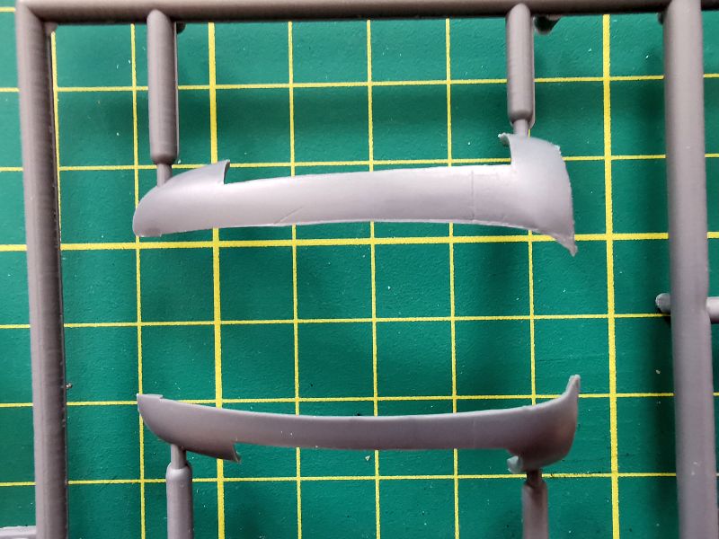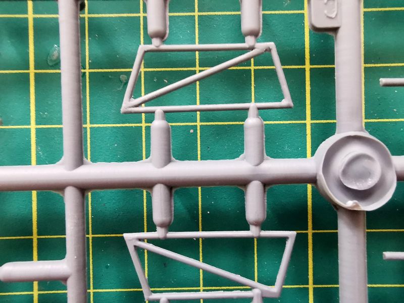 Trzecia ramka jest nieco mniejsza od pozostałych, znajdziemy tam podzespoły wnętrza – kabiny oaz luków podwozia. Znajdziemy tam także jego golenie. Jak widać na zdjęciach większość detali znajdujących się na tej wyprasce ma kształt podłużnych prętów, dlatego trzeba zachować ostrożność przy ich wycinaniu i obróbce.