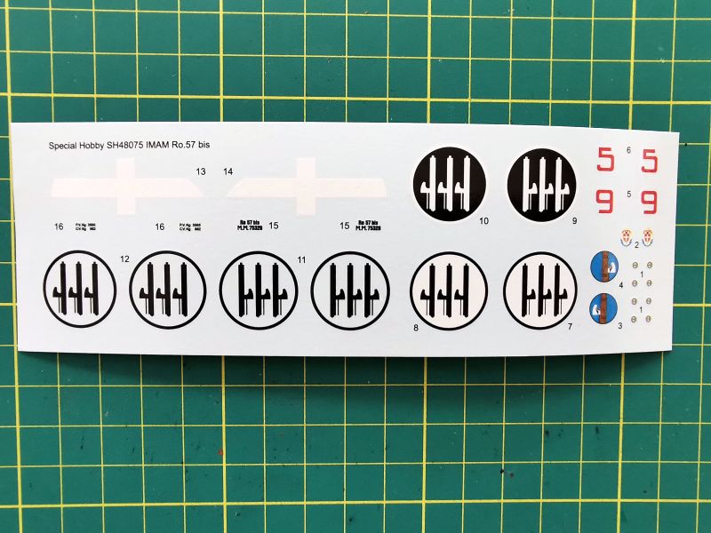 Do tego wszystkiego dochodzi kalkomania. Średniej wielkości arkusik, bo i oznaczeń było niewiele. Znaki przynależności państwowej numery, trochę napisów. Dość gruby film sugeruje, że drukiem zajmował się Eduard. Będzie zatem możliwe usuniecie błony po całkowitym wyschnięciu kalkomanii, minimum po 24 godzinach.