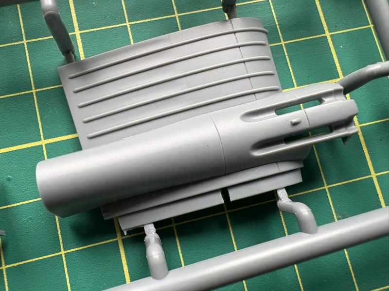Różnice wynikają z oczywistych zmian konstrukcyjnych, które pozwoliły na przekształcenie szybowca transportowego w samolot transportowy. Większość detali potrzebnych do odwzorowania tych zamian w modelu znajdziemy na wyprasce oznaczonej jako „G”. Znajdziemy na niej głownie podzespoły układu napędowego, czyli zmodyfikowane elementy skrzydeł z gondolami silnikowymi, same silniki, śmigła czy kolektory spalin. Niektóre z detali występują w dwóch wariantach, ale nie wszystko wykorzystamy. Przydadzą się zapewne w modelu kolejnej odmiany tego samolotu. Nieco inaczej wygląda kwestia śmigieł. Do dyspozycji mamy standardowe trójłopatowe, ale także czterołopatowy, eksperymentalny wariant, który wykorzystamy w przypadku wyboru malowania bonusowego. Na wyprasce znajduje się też całkiem ładna tabliczka z nazwą samolotu. Możemy ją zainstalować na podstawce pod model, nie zależnie od jej stylu – fragmentu lotniska, lustra czy czegokolwiek innego.