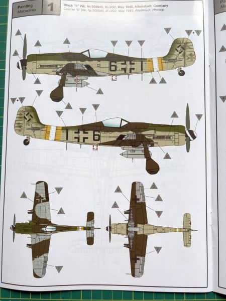 Do wyboru mamy trzy warianty malowania, wszystkie z maja 1945 r. i wszystkie dość atrakcyjne z uwagi na fakt, iż pierwowzory malowano tym, co było akurat pod ręką. Kłopoty surowcowe z jakimi pod koniec wojny borykała się gospodarka III Rzeszy sprawiły powstanie chyba najbardziej efektownych malowań samolotów wojskowych, które chyba nigdy nie przestana być atrakcyjne dla modelarzy. Nawet pomimo tego, że w niektórych przypadkach nie zachowały się zdjęcia, a dany schemat odtworzony został na podstawie dokumentów, jak w przypadku malowania nr 3.