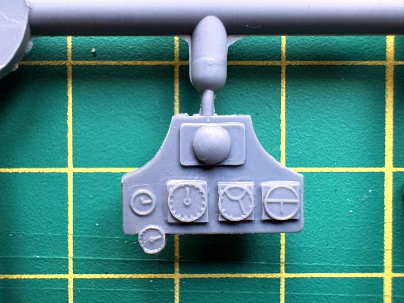 Zestaw ten jest short runem w najbardziej klasycznej postaci, a oznacza to, że każdego, kto weźmie go na warsztat, czeka odpowiednia dawka pasowania, szlifowania i szpachlowania. Warto o tym pamiętać, a porównywanie tego modelu o tego co oferują taki firmy jak Zoukei Mura czy GWH, świadczyć może jedynie o braku elementarnej wiedzy z zakresu modelarstwa redukcyjnego. Pierwsza z wyprasek, która wpadła mi w ręce zawiera połówki kadłuba, silniki startowe oraz trochę drobiazgów, głównie wyposażenia kabiny. Jakość jest niezła, linie podziału i detale wyraźne i ładnie odtworzone. Wystarczy spojrzeć na tablicę przyrządów.