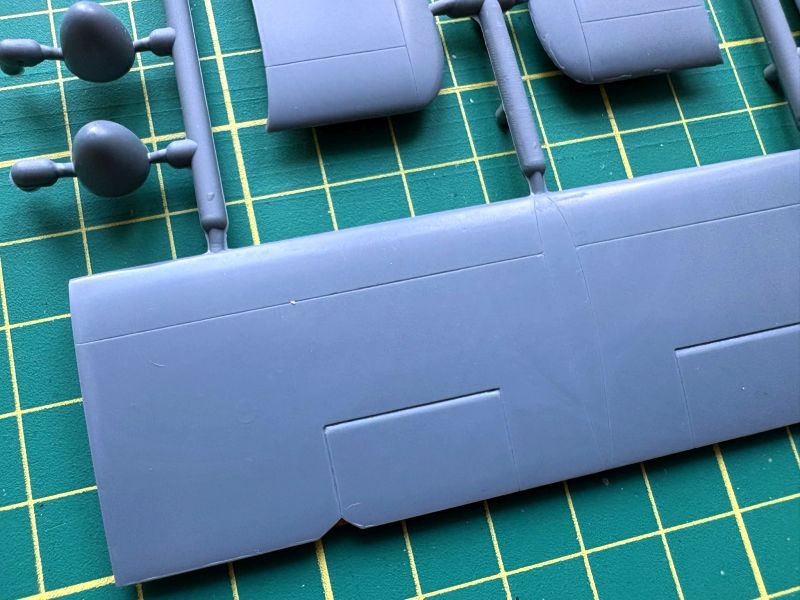 Dwie kolejne ramki to skrzydła oraz usterzenie, które jest w dwóch wersjach. Powierzchnie sterowe zostały wykonane jako integralne części płatów i usterzenia, więc jak ktoś chce mieć je wychylone, musi trochę popracować samodzielnie. Detali tu dużo nie ma, co wynika w prostoty konstrukcji pierwowzoru, a nie braku dbałości producenta.