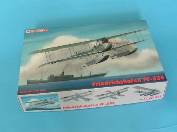Firma Techmod jest znana jako producent kalkomanii, dlatego sporym zaskoczeniem była zapowiedź modelu hydroplanu obserwacyjnego Friedrichshafen FF-33E. Miało to miejsce prawie dwa lata temu, model ukazał się z sporym opóźnieniem, podobno producent napotkał jakieś problemy technologiczne. Na szczęście dla modelarzy udało się je pomyślnie rozwiązać i model trafił na rynek. Na początek w sprzedaży pojawiła się wersja niemiecka z krążownika pomocniczego Wolf. Producent zapowiada ponadto wersję polską oraz szwedzką.