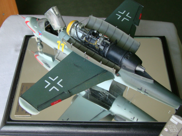 Model do którego odnosi się niniejszy artykuł, to samolot o numerze fabrycznym 12074 „żółta 11” pochodzi z 3/JG-1 z Leck/Holstein. Został wyprodukowany w październiku 1944 roku w Schwabisch –Hall. Samolot był pilotowany przez oblt. Emila Demuth’a. Znalezione w Internecie zdjęcie samolotu przedstawia rysunek na początku artykułu. Model został pomalowany wg uproszczonych standardów obowiązujących w 1945 roku. Górne powierzchnie pomalowałem farbą RLM 82, a osłona silnika i usterzenie zostały pomalowane kolorem RLM 81. Dolne powierzchnie płatowca zostały pomalowane kolorem RLM 76. Do malowania użyłem emalii olejnych firmy Modellmaster.