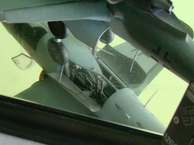 Model posiada zestaw uzbrojenia charakterystyczny dla wczesnych wersji He-162 A-2 tj. 2x20mm MG151/20 w zamkniętych komorach kadłubowych. Do budowy modelu wykorzystałem działko MG 151/20 z zestawu Aires oraz zestaw nr 5012 firmy CMK. Wykonałem jedynie lewą komorę aby nie zakłócać linii kadłuba modelu.
