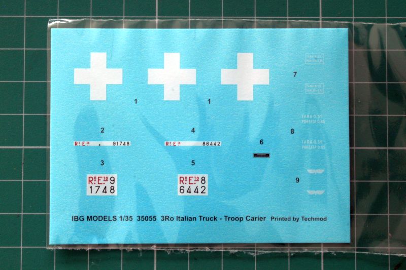 Kalkomanie do obu zestawów powstały w naszym rodzimym Techmodzie. Zawierają one numery rejestracyjne oraz drobne napisy eksploatacyjne. Lancię w klasycznej wersji ciężarowej możemy także ozdobić sporych rozmiarów białymi krzyżami. Oba zestawy zawierają dwa warianty malowania i oznakowania. W przypadku nosiciela haubicy obydwa  warianty pochodzą z północno afrykańskiego teatru działań wojennych, w przypadku ciężarówki mamy do wyboru pomiędzy Północną Afryką a Grecją. Niestety producent nie podaje bliższych szczegółów dotyczących pojazdów noszących oznakowania wydrukowane na kalkomaniach. Zabrakło tu także kalkomanii z zegarami na deskę rozdzielczą w szoferce. Producent robi przecież całkiem dobre tablice przyrządów na kalkomaniach do modeli samolotów, więc warto zrobić je i w takich modelach, jak te.