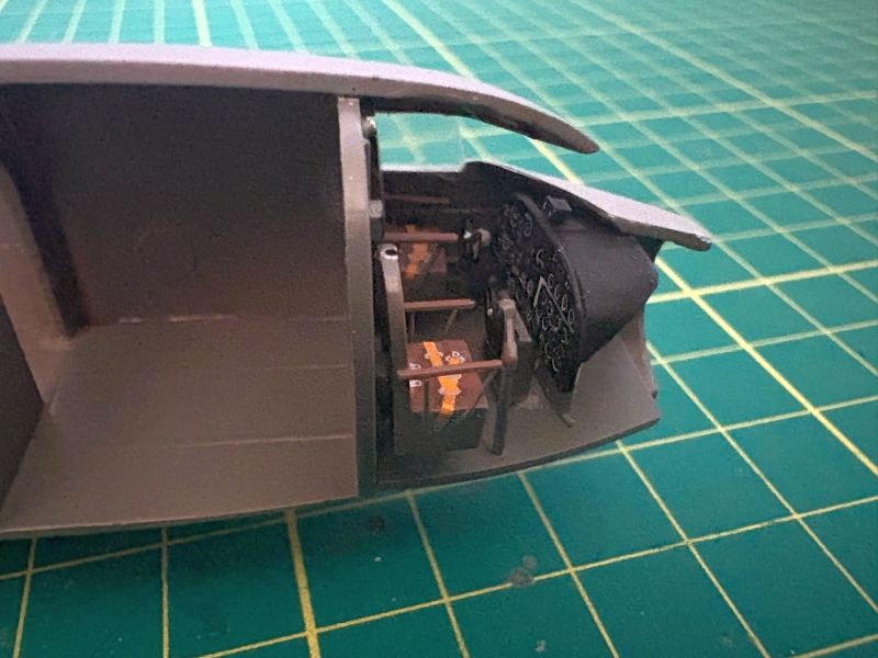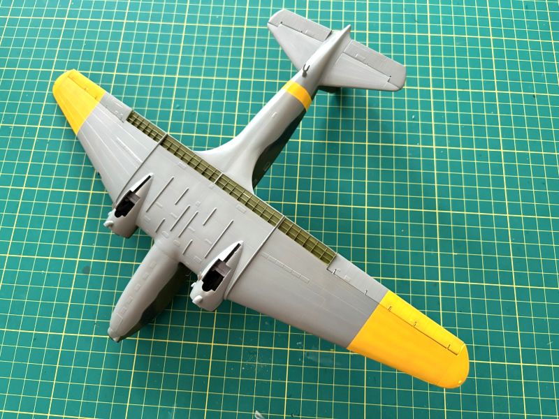 Wnętrze pomalowałem zgodnie z instrukcją, kolorem stosowanym w RAF-ie. Zresztą kolorystyka odrestaurowanego oryginału też budziła spore wątpliwości. Podejrzewam, że w czasie remontu i wymiany silników, jeszcze w czasie wojny, pomalowali czym mieli, zaś na podstawie tego odtworzono kolorystykę samolotu podczas renowacji.