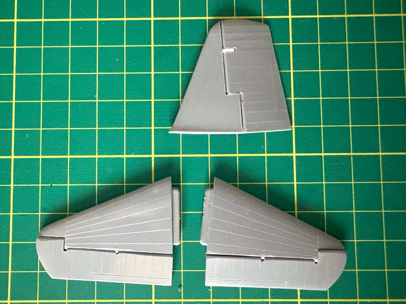 Mogłem się zabrać za sklejanie kadłuba w całość. W lewą połówkę wkleiłem wnętrze i zostawiłem na noc co całkowitego wyschnięcia. Wszystko pasowało niemal idealnie, chyba jedna z wręg wymagała delikatnego przeszlifowania. Przygotowałem sobie także usterzenie. Spotkała mnie kolejna miła niespodzianka, bo z wycięciem powierzchni sterowych i sklejenia ich w pozycji wychylonej, nie było żadnego problemu.