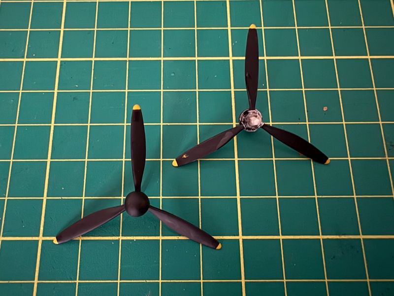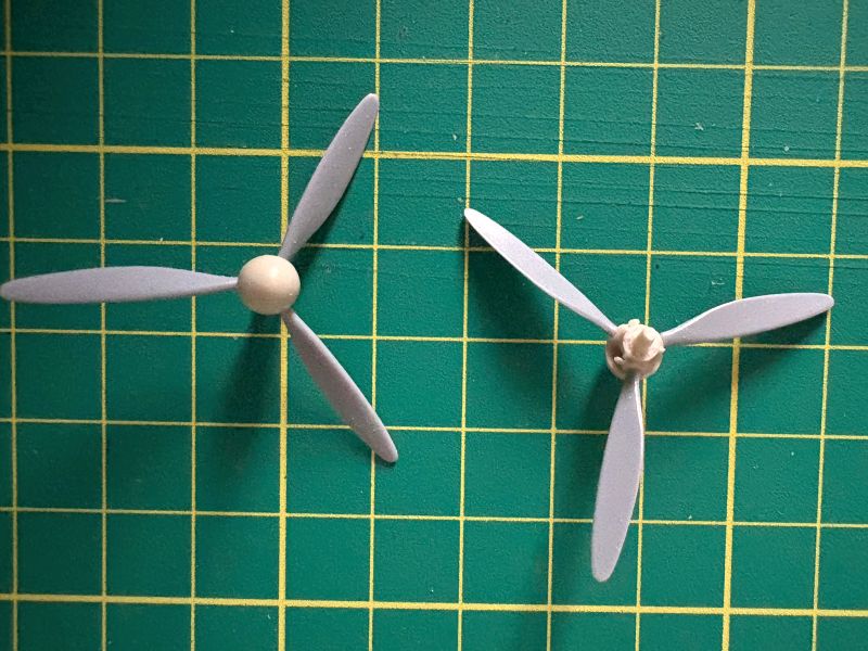 Wcześniej przygotowałem sobie także klapy, śmigła, silniki oraz golenie podwozia głównego. Jak widać, silniki postawiłem praktycznie bez zmian, śmigła posklejałem zgodnie z instrukcją, zaś klapom i podwoziu musiałem poświęcić nieco czasu i uwagi, żeby uzyskać efekt zgodny z rzeczywistym pierwowzorem.