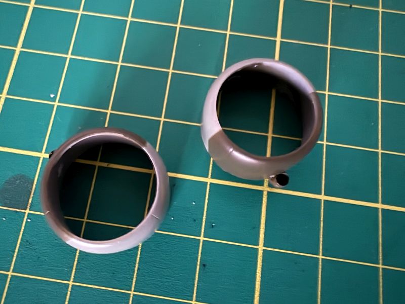 Kadłub został złożony w całość. Jednakże, jak przyjdzie do klejenia kolejnego takiego modelu, na pewno zastosuję patent znany z klejenia modeli vacu. Wkleję pod miejsca łącznia paski tworzywa, co wzmocni spoinę oraz zapobiegnie powstawaniu pęknięć podczas szlifowania. W tym miejscu pojawił się jeden z dwóch słabych punktów całego zestawu. Doklejana cześć nosowa. Zarówno elementy z tworzywa, jak i żywicy mają zbyt małą średnicę w stosunku do kadłuba. Trzeba zatem szlifować i odtwarzać w tym miejscu linię podziału, a trochę tego jest. Będzie jeszcze o tym mowa.