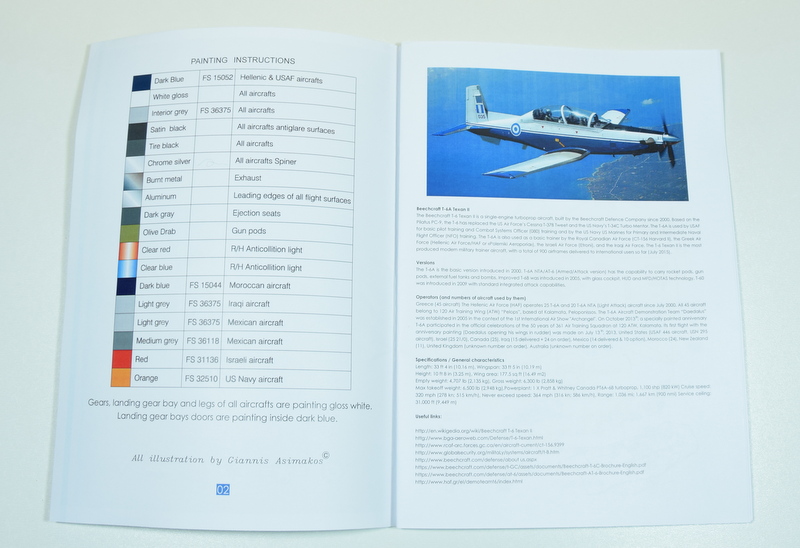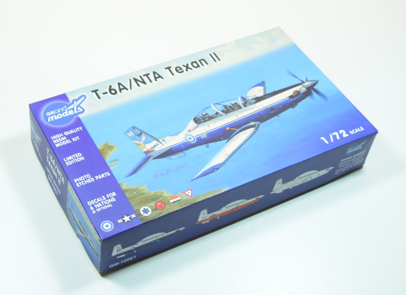 BEECHCRAFT T-6A/NTA TEXAN II to jednomiejscowy, lekki samolot szkolno-treningowy ,jest to zamerykanizowana wersja Szwajcarskiej firmy PILATUS AICRAFT PC-9. Zestaw na samym początku prezentuje się dość okazale, a to dzięki wyśmienicie i efektownie zaprojektowanemu boxartowi. Przedstawia TEXAN-a w okolicznościowym malowaniu Greckich sił powietrznych. Model jest zestawem z serii LIMITED EDITION. Zestaw T6-A/NTA TEXAN II jest pierwszym zestawem na rynku firmy GRAND MODELS pochodzącej z Grecji.