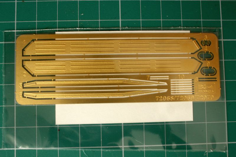 Części z tworzywa są oczywiście uzupełnione fototrawioną blaszką. W obu zestawach jest ona taka sama. Znajdują się na niej takie rzeczy jakie standardowo umieszcza się na blaszce, czyli relingi, wszelkiego rodzaju schodnie, drabiny czy działka plot. IBG poszło jednak nieco dalej i jako fototrawione zaprojektowało wszystkie osłony pomostów, co jest bardzo dobrym rozwiązaniem, ponieważ osłony te będą odpowiednio cienkie, ale też mogą dać w kość tym, którzy nie mają zbyt dużego doświadczenia w pracy z elementami fototrawionymi.