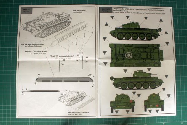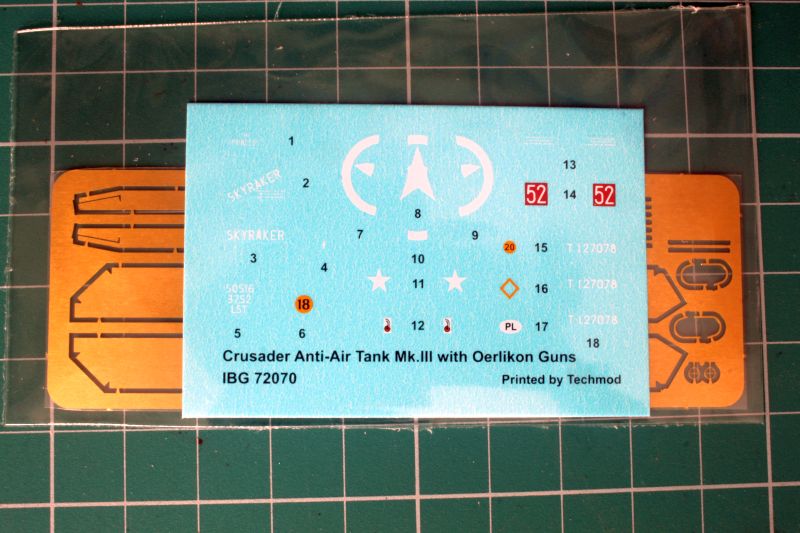 Kalkomanie do obu Crusaderów opracowała firma Techmod. W każdym znajdują się kalkomanie umożliwiające budowę modelu w kilku wariantach kolorystycznych. W przypadku Crusadera Mk. I są to trzy malowania z Afryki Północnej, w tym z 1 Dywizji Pancernej z 1941 r. Przeciwlotniczą wersję możemy natomiast wykonać w dwóch malowaniach z 1944r: