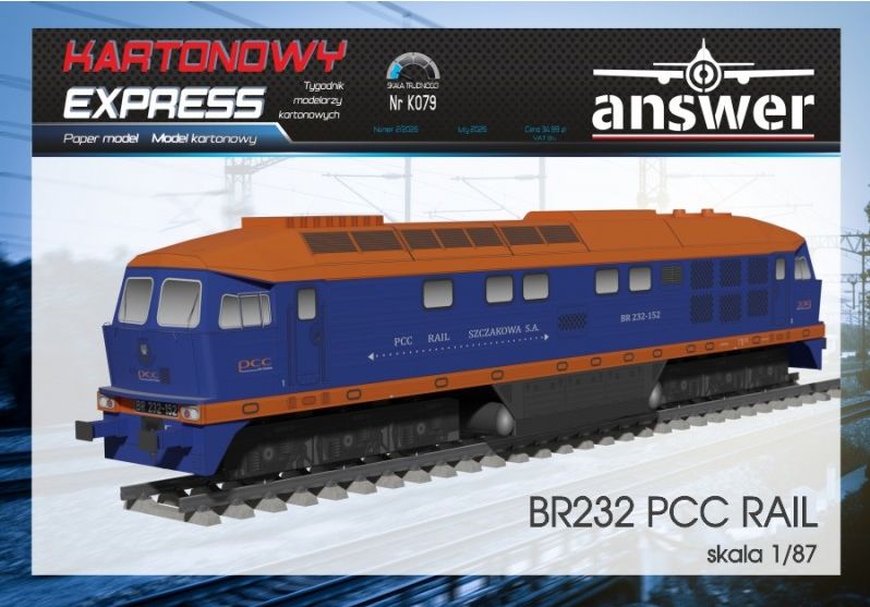 | Kartonowy Exspress: BR232 PCC RAIL Skala: 1:87 Nr kat: No. K079 Typ modelu: model kartonowy |
