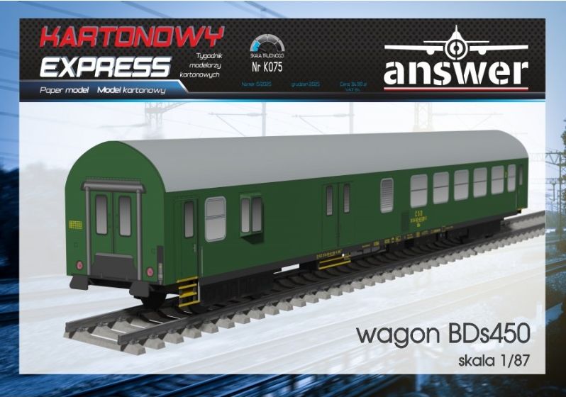 | Kartonowy Exspress: Wagon BDs450 Skala: 1:87 Nr kat: No. K075 Typ modelu: model kartonowy |