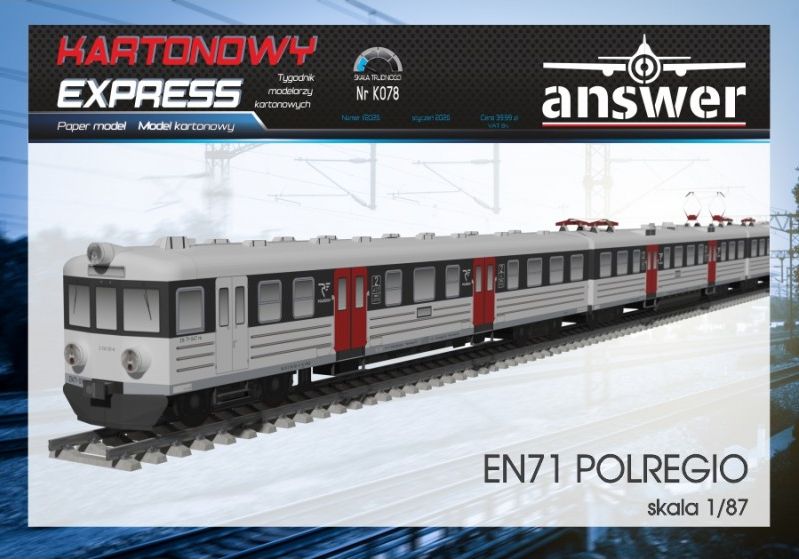 | Kartonowy Exspress: EN71 POLREGIO Skala: 1:87 Nr kat: No. K078 Typ modelu: model kartonowy |
