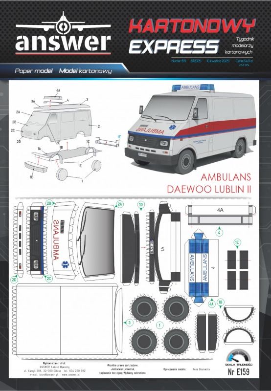 Kartonowy Express: Ambulans Daewoo Lublin II Skala: - Nr kat: E.159 Typ modelu: model kartonowy |