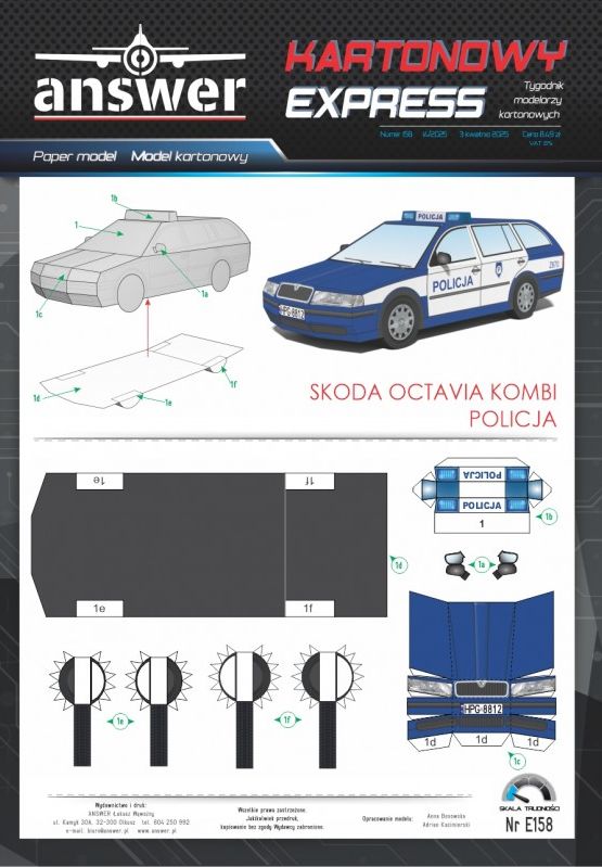 | Kartonowy Express: Skoda Octavia Kombi Policja Skala: - Nr kat: E.158 Typ modelu: model kartonowy |