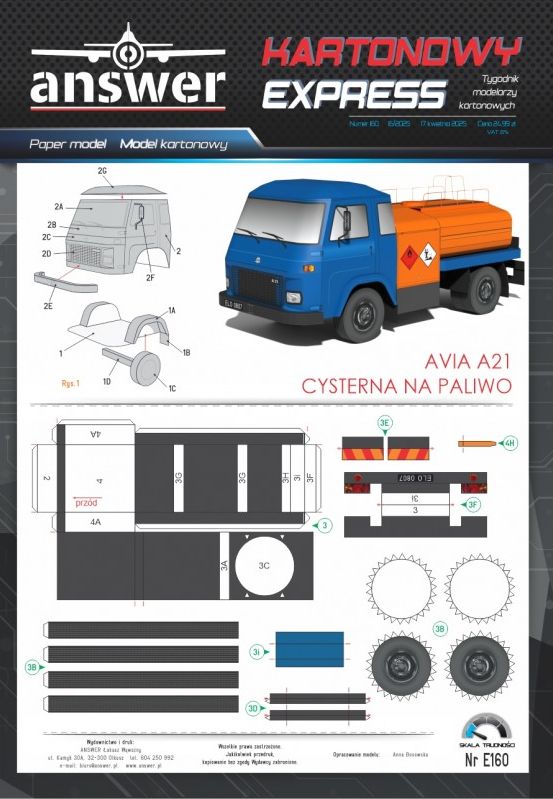 Kartonowy Express: Avia A21 Cysterna na paliwo Skala: - Nr kat: E.157 Typ modelu: model kartonowy |