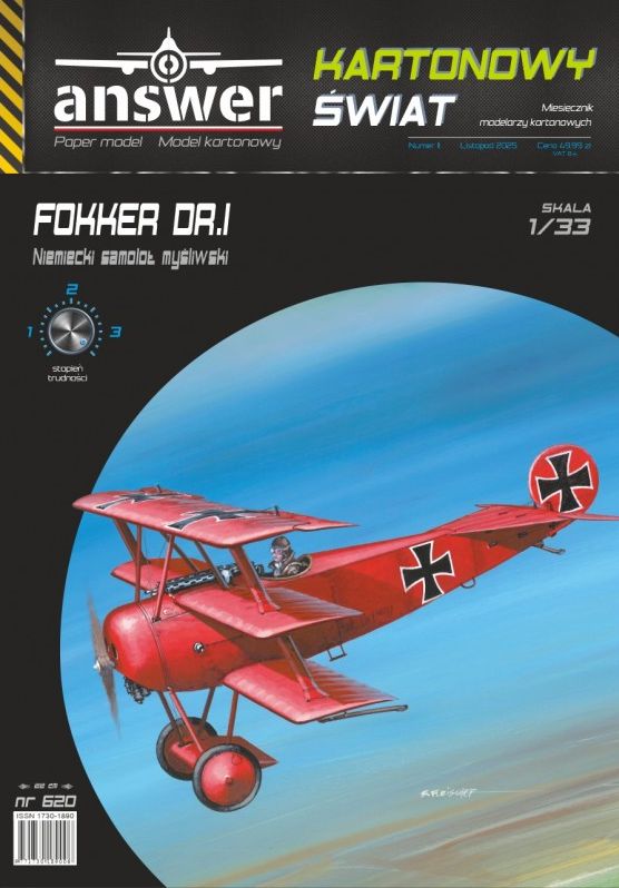 | Kartonowy Świat: Fokker DR.I Skala: 1:33 Nr kat: No. 620 Typ modelu: model kartonowy |