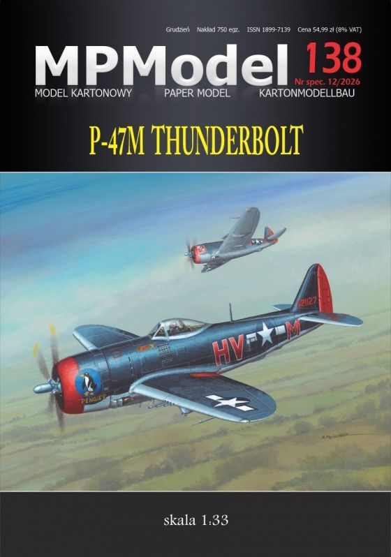| MPModel: P-47M Thunderbolt Skala: 1:33 Nr kat: No. 138 Typ modelu: model kartonowy |