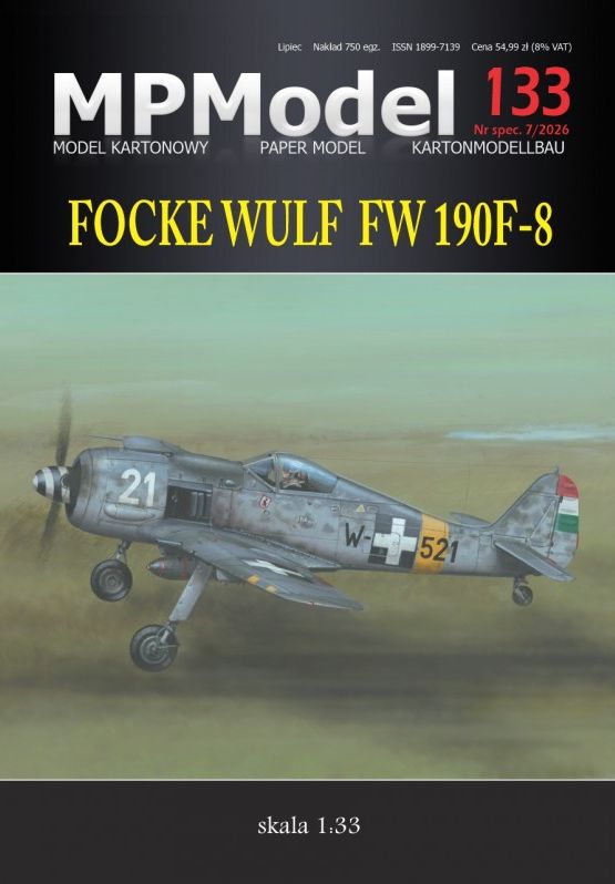 | MPModel: Focke Wulf FW 190F-8 Skala: 1:33 Nr kat: No. 133 Typ modelu: model kartonowy |