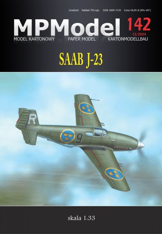 MPModel: SAAB J-23 Skala: 1:33 Nr kat: No. 142 Typ modelu: model kartonowy |