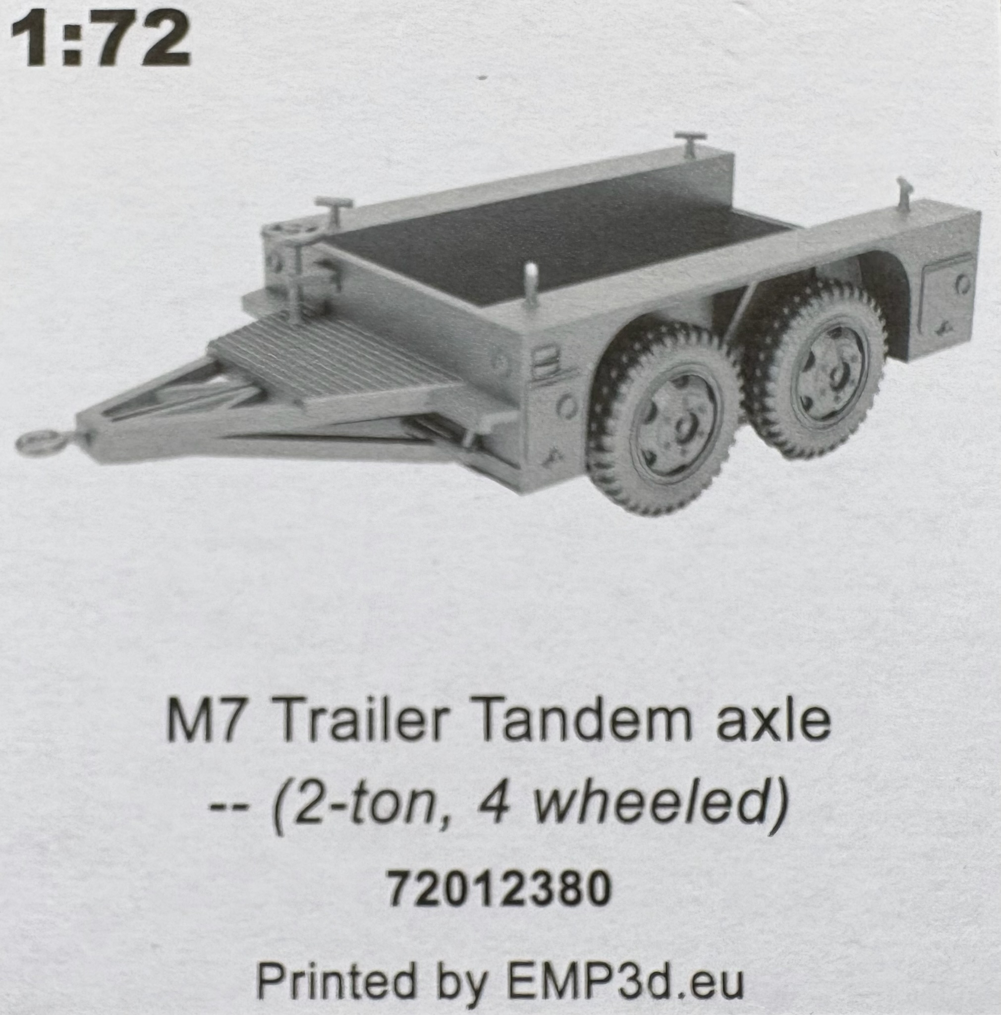 | EMP: M7 Trailer Tandem axle - (2-ton, 4 wheeled) Skala: 1:72 Nr kat: 72012380 Opcje malowania: - Typ modelu: wydruk 3D |