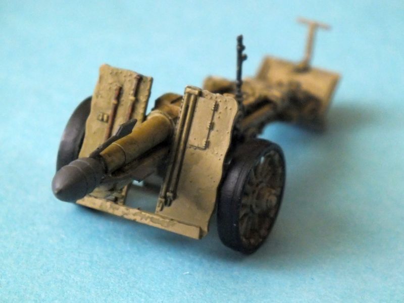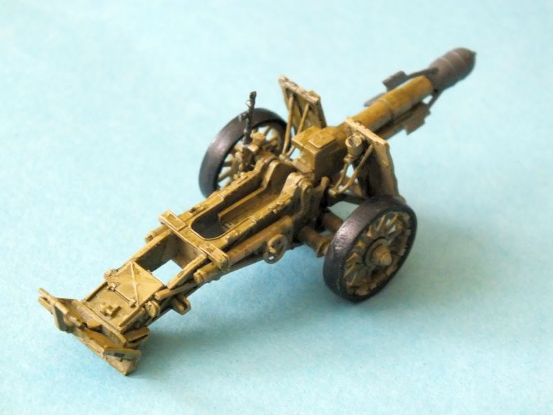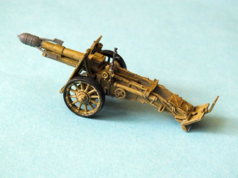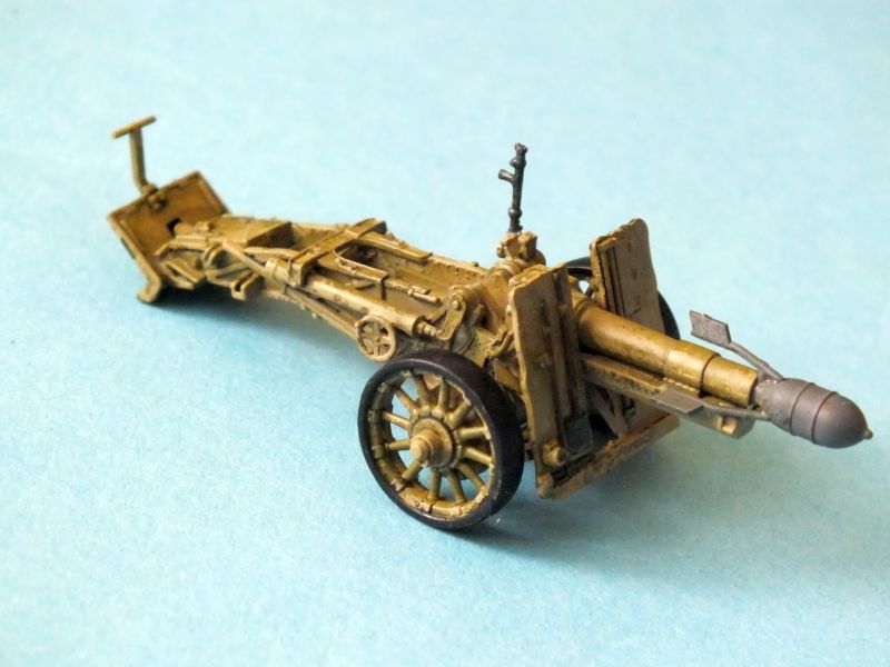 | Model ciężkiego działa piechoty 15 cm siG 33 z kołami drewnianymi i Stielgranate 42 w skali 1/72 sklejony z zestawu firmy Arma Hobby przez Edmunda Nitę |
