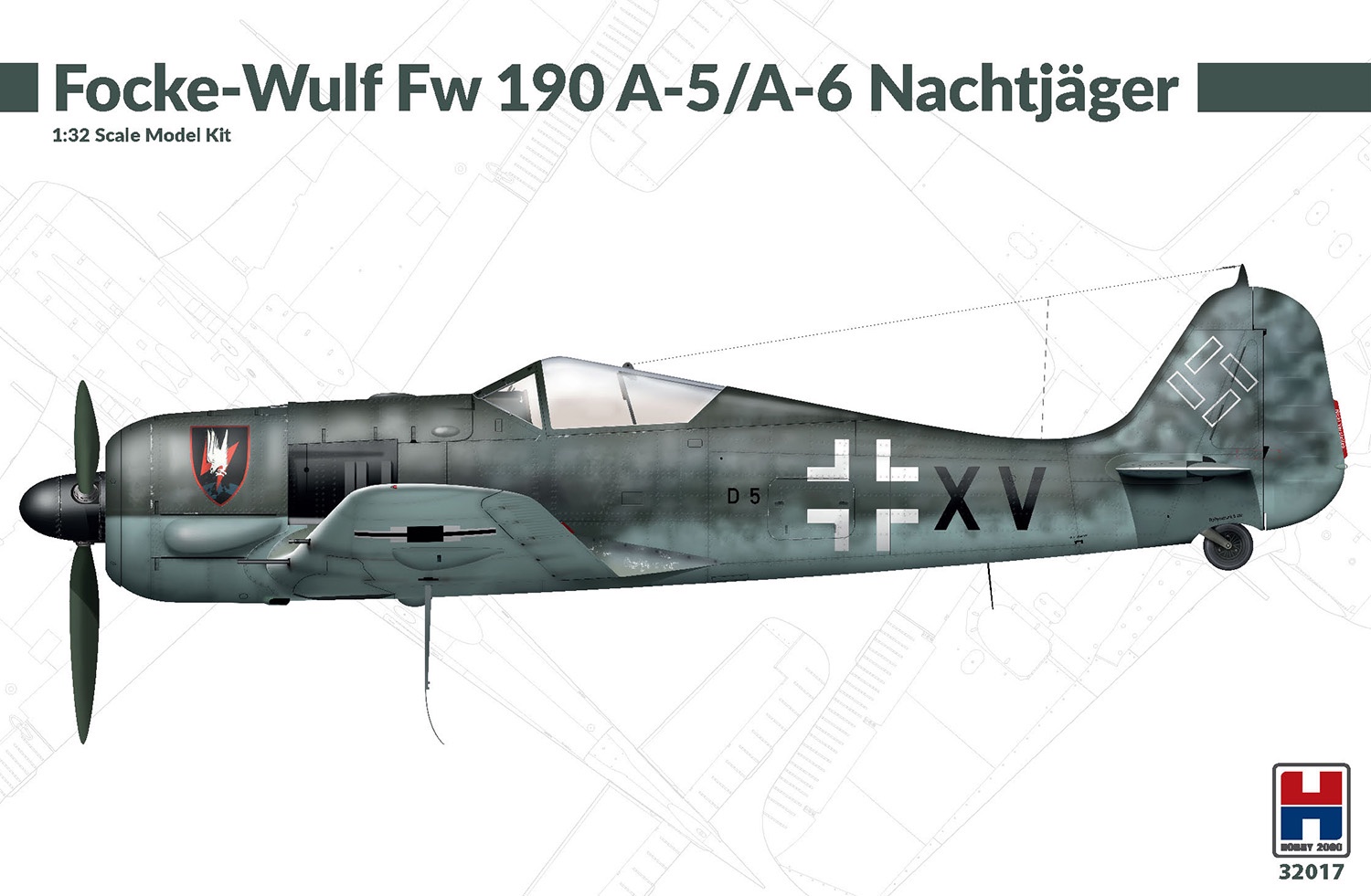 | Hobby 2000: Focke-Wulf Fw 190 A-5/A-6 Nachtjäger Skala: 1:32 Nr kat: 32017 Opcje malowania: 3 Typ modelu: model wtryskowy (ex- Hasegawa), maski |