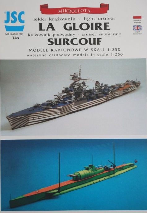 JSC: La Glorie, Surcouf Skala: 1:250 Nr kat: 78s Typ modelu: zestaw modeli kartonowych |