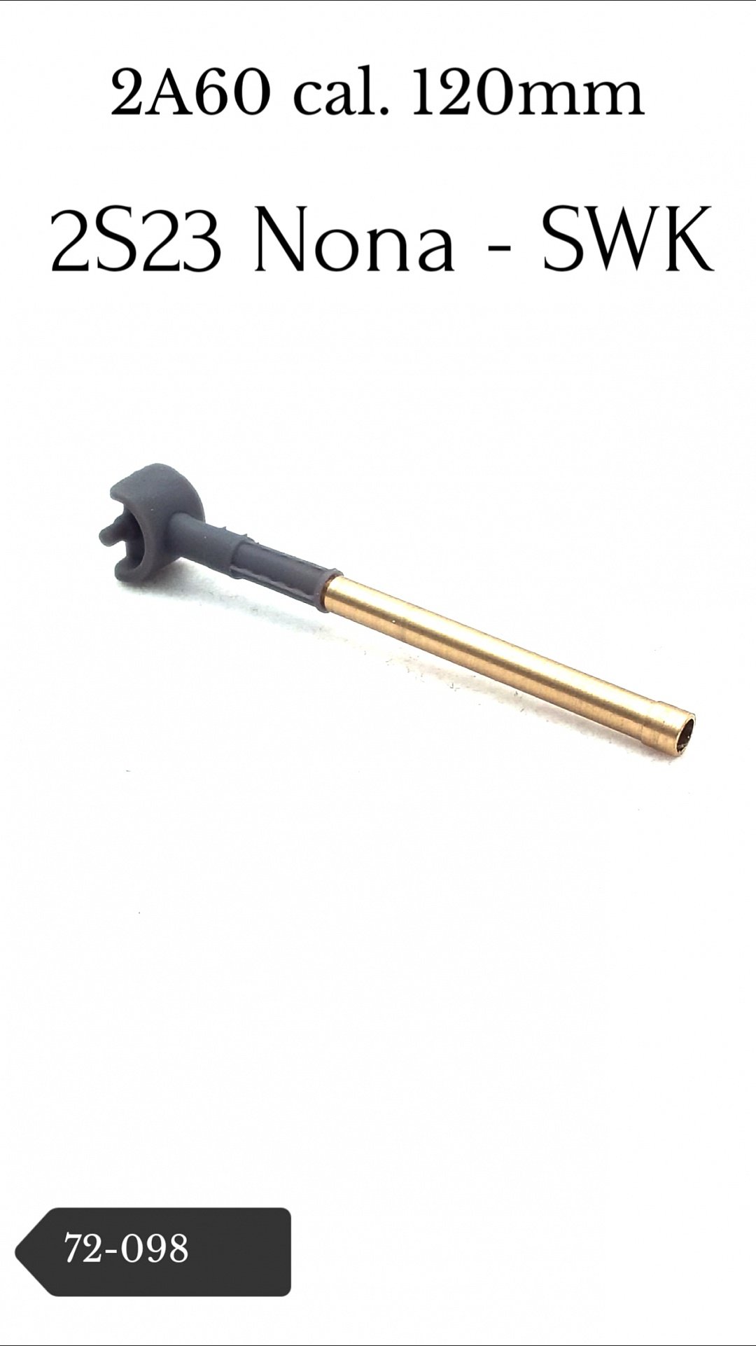 | Martola: 2A60 120 mm 2S23 Nona - SWK Skala: 1:72 Nr kat: M72-098 Typ: metalowa lufa, wydruk 3D, Dedykowany do: różne |