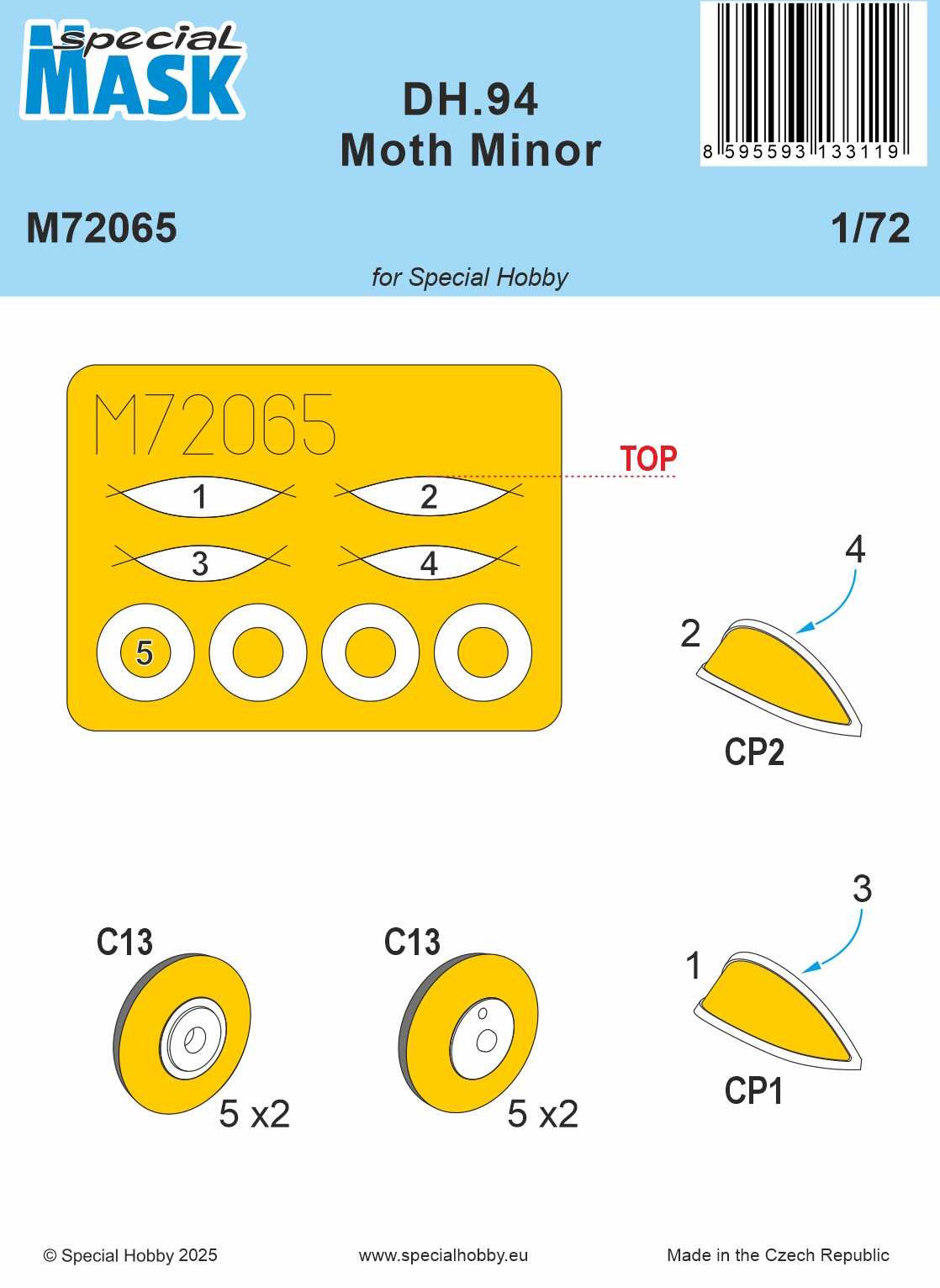 | Special Mask: DH.94 Moth Minor Skala: 1:72 Nr kat: M72065 Typ: maski Dedykowany do: Special Hobby |