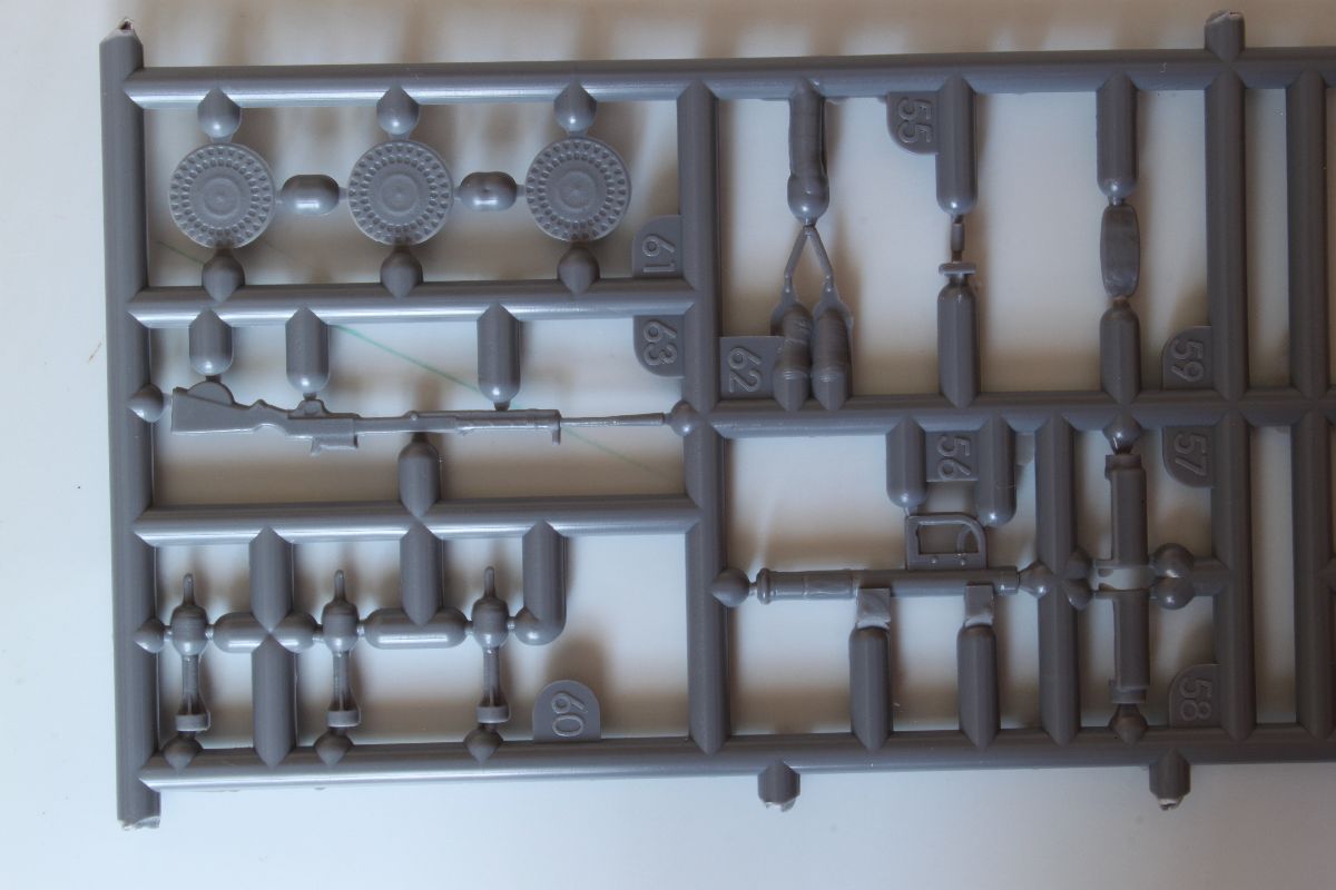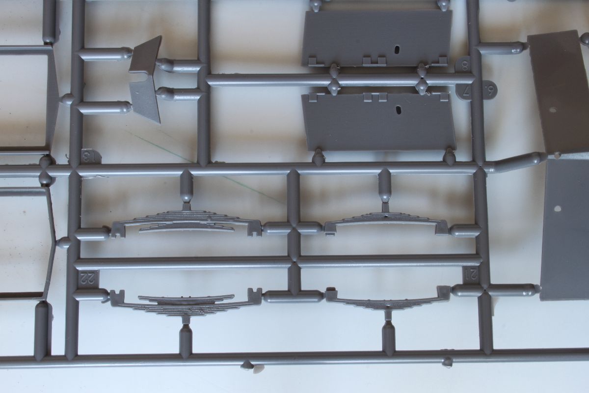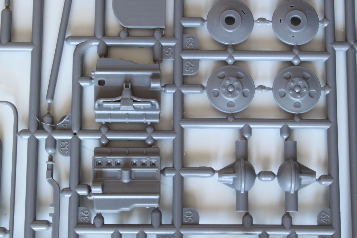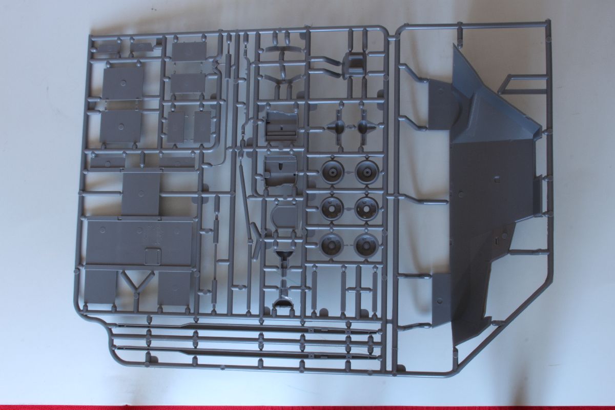 Elementy z polistyrenu prezentują niezły poziom, ale po modelach PZL-23, czy CL-II oczekiwałem czegoś lepszego. Zacznijmy jednak od plusów. Model jest dość szczegółowy, posiada makietę silnika i przedziału załogi. Większość włazów oraz pokryw możemy wykonać w pozycji wychylonej. Dysponujemy również uzbrojeniem w postaci karabinu maszynowego DP oraz granatnika Piat, oraz amunicji do nich. Nieźle wykonane, ale również widziałem lepsze repliki. Silnik i przedział kierowcy trzeba uzupełniać, detalować, brakuje takich rzeczy jak, dźwignia zmiany biegów, pedałów sprzęgła, gazu i hamulca, a to wszystko jest doskonale widoczne przez otwarte włazy zarówno z góry pojazdu, jak w jego podłodze. Również we własnym zakresie musimy wykonać fotel strzelca, ławki dla desantu oraz uchwyty na amunicję. Poza tym warto popracować nad detalami sinika, poprzez dodanie przewodów oraz wszelkiej maści drobiazgów które poprawią jego wygląd. Podobnie rzecz się ma z fakturą powierzchni kadłuba. Tę wewnętrzną trzeba oczyścić z śladów po formie, zaś zewnętrzna, jest w sumie ok, ale koniecznej jest poprawienie linii spawów, które są zbyt delikatne i zbyt płaskie.