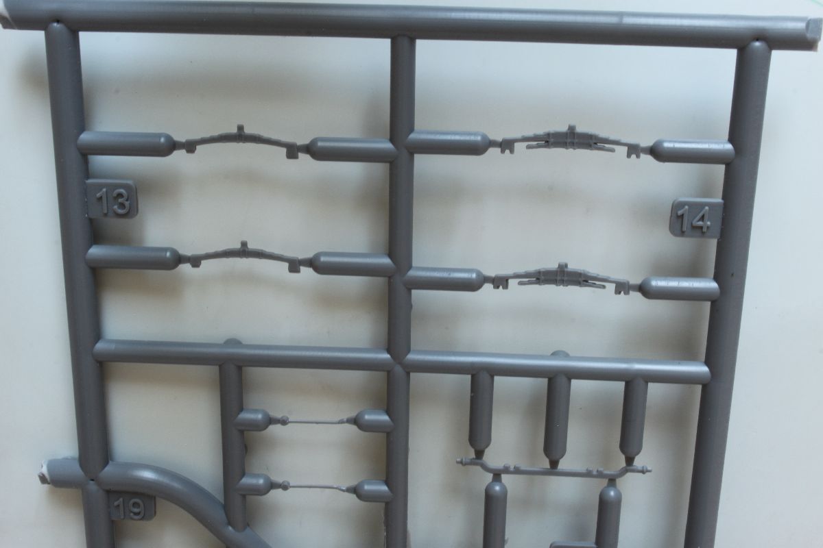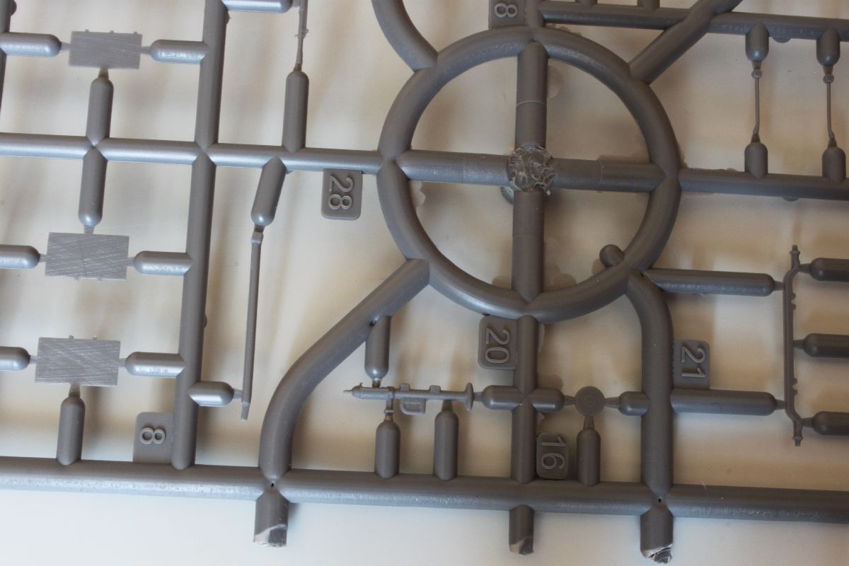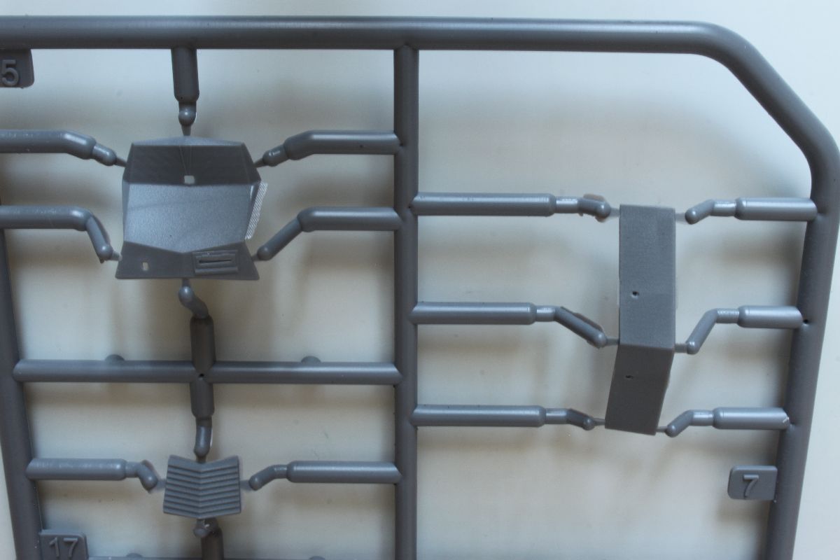 Zestaw składa się z 38 elementów zgrupowanych w jednej ramce, którą z kolei podzielono na trzy części, żeby wszystkie mieściły się w pudełku. Tworzywo z jakiego wykonano części jest ciemnoszare, takie samo jak w przypadku jego większego brata. Podobny jest także poziom wykonania części, czyli całkiem dobry. Zacząłem się natomiast zastanawiać czy miałem rację pisząc, że spawy w modelu w skali 1/35 wymagają poprawy. W małym Kubusiu na pewno nie będę ich poprawiać, bo wyglądałoby to kuriozalnie, natomiast w przypadku 35-tki sprawa jest otwarta. Spotkałem się z opiniami, że na pewno trzeba je poprawiać, ale są tez tacy, którzy twierdzą, że spawy te są poprawne. Ta ostatnia opinia pochodzi od ludzi zajmujących się również rekonstrukcją historyczną i obcującą z prawdziwymi pojazdami. Kwestia zatem jest otwarta, decyzję podejmę po analizie zdjęć. Może uda mi się obejrzeć prawdziwy pojazd.