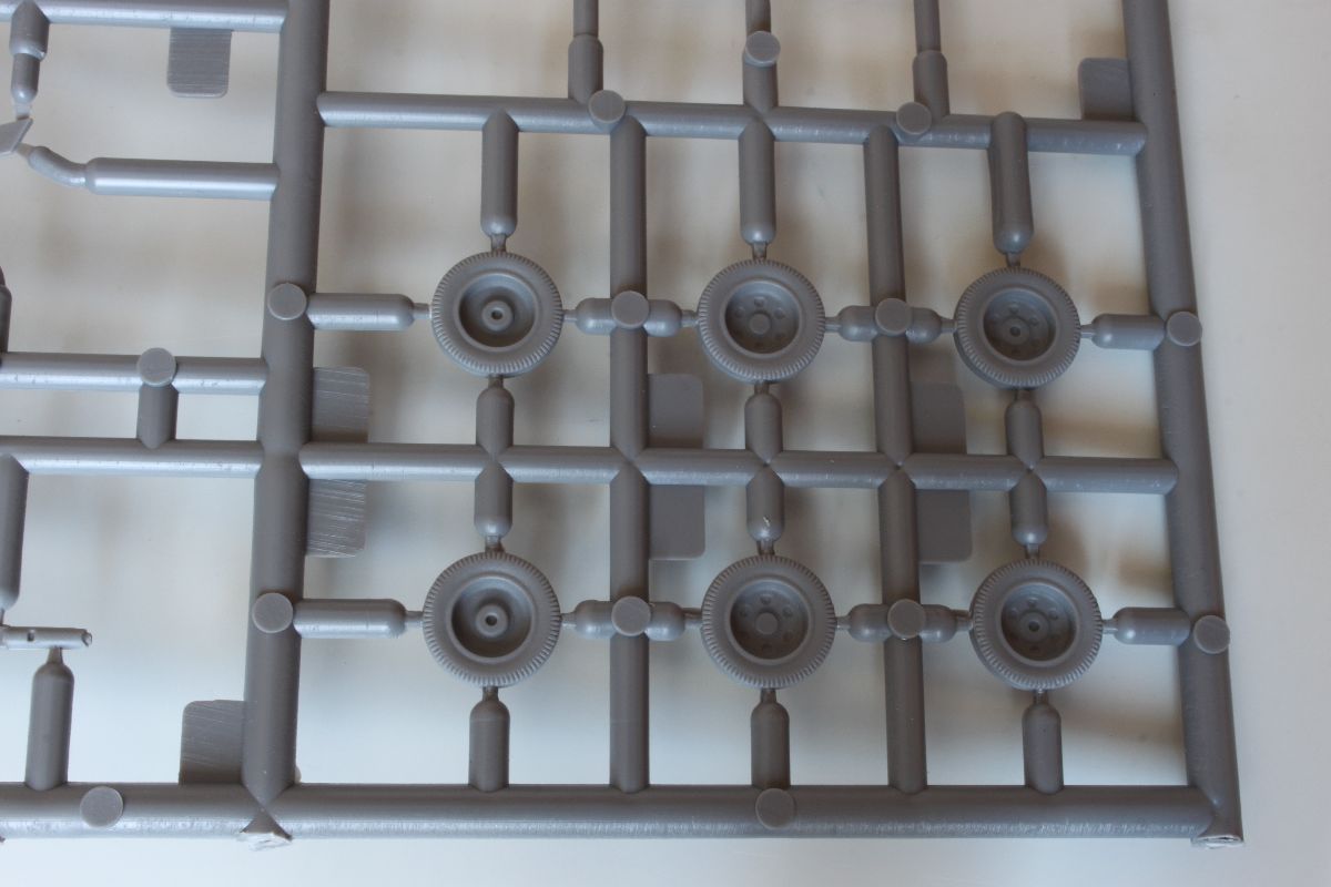 Koła wykonano jako jednolite odlewy – felgi razem z oponami, ale na bardzo dobrym poziomie. Również drobne detale takie jak uzbrojenie, resory czy wszelkiego rodzaju uchwyty czy pokrywy prezentują dobry poziom, może tylko końcówka lufy w przypadku rkm-u DP wymaga poprawki, ale poza tym replika nie wymaga większych ingerencji ze strony modelarza.