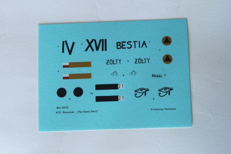 Wśród ramek wtryskowych jest jedna nieopisana w instrukcji, a mianowicie ramka F. Umożliwia ona wykonanie Rosomaka z pędnikami wodnymi, a więc w wersji europejskiej.