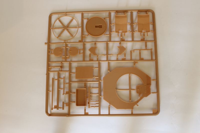 Zestaw zawiera 14 ramek z tworzywa o kolorze piaskowym, ramkę z wieżą, wanną kadłuba i jego górę. Oprócz tego znajduję się również ramka z przezroczystego tworzywa i dwie blaszki fot otrawione. Uzupełnieniem jest instrukcja i kolorowy plakat.