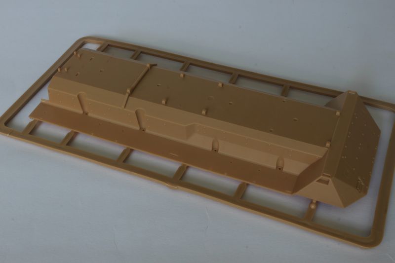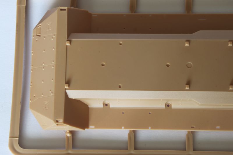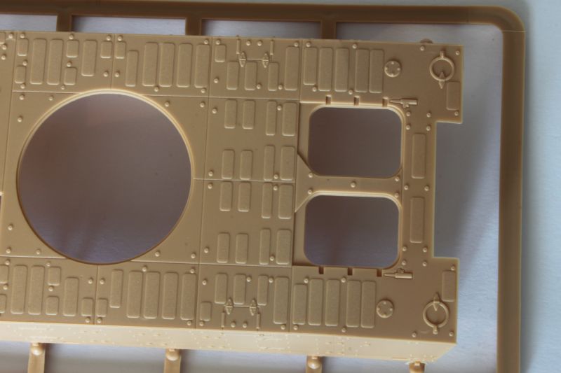 Największe elementy to wieża, wanna kadłuba i jego górna część. Na podkreślenie zasługuje dobrze oddana faktura paneli antypoślizgowych, a także ryflowana blacha w przedziale desantowym. Jak zostało to wspomniane już wcześniej – części są tak przygotowane, że umożliwiają wykonanie otwartych włazów i drzwi desantowych. Nie jest otwarty przedział silnika ale nie powinno to stanowić problemów dla średnio zaawansowanych modelarzy (oczywiście o ile będą ten przedział chcieli otworzyć).