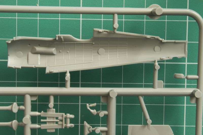Zestaw ma także swoje grzeszki, bo w końcu który ich nie ma. Na kilku elementach pojawiły się wklęśnięcia tworzywa, ale na szczęście są one bardzo płytkie i w takich miejscach, gdzie ich usunięcie nie będzie kłopotliwe. Z centropłata trzeba będzie także usunąć żłobkowaną fakturę z dwóch paneli i poprawić jeden wyrzutnik łusek nie były one symetryczne, jak to przedstawiono w modelu. Tutaj mam dwie propozycje rozwiązania tego problemu. Pierwsza, prostsza polega na wypełnieniu jamek klejem typu super glue lub szpachlówką i obrobieniu po wyschnięciu, przeszlifowaniu dwóch paneli na centropłacie i korekcie wyrzutnika łusek podczas budowy modelu. Druga natomiast opcja jest bardziej czasochłonna, polega na na napisaniu na ten temat elaboratu na kilkanaście stron i opublikowaniu go na jednym z forów modelarskich. Oczywiście modelu kleić nie musimy.