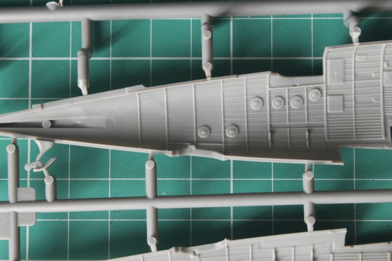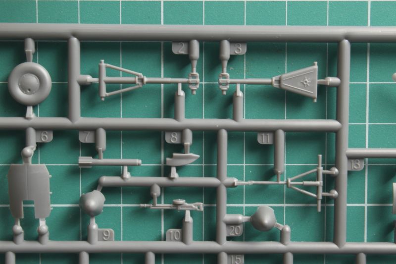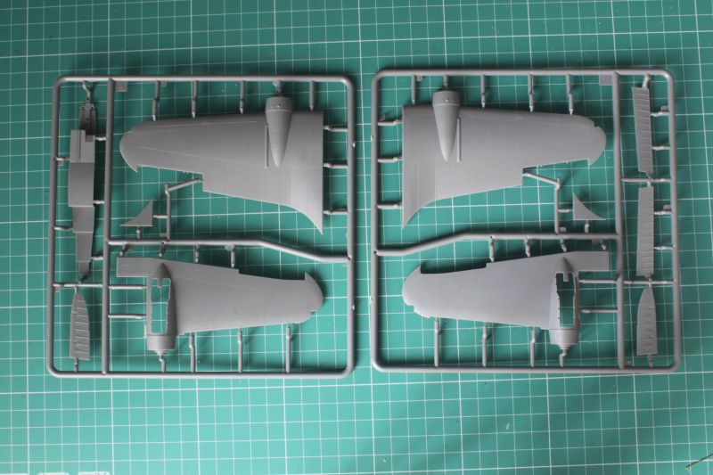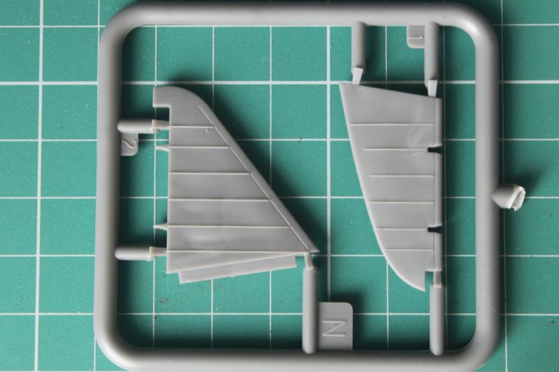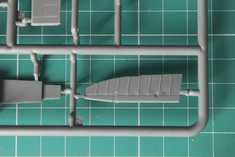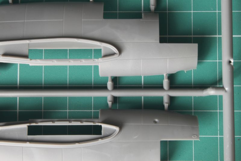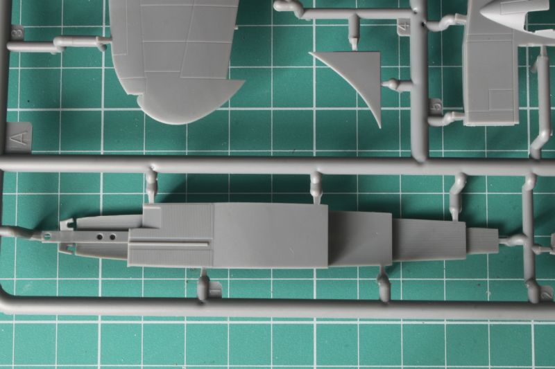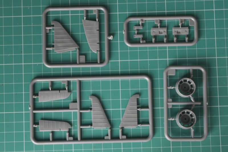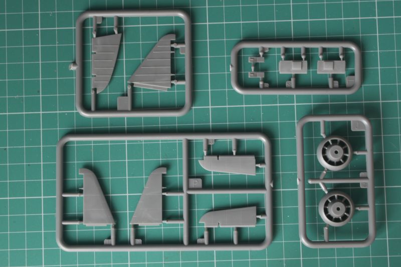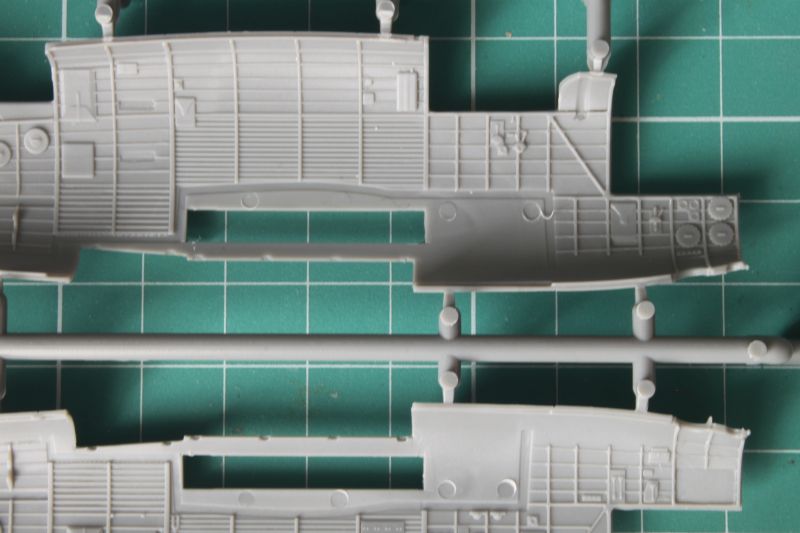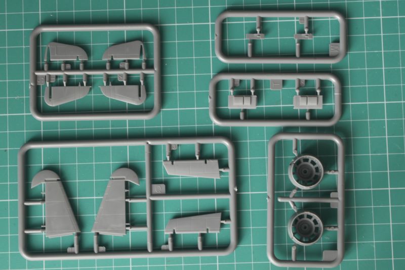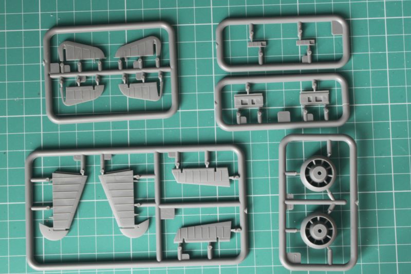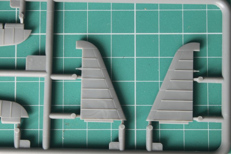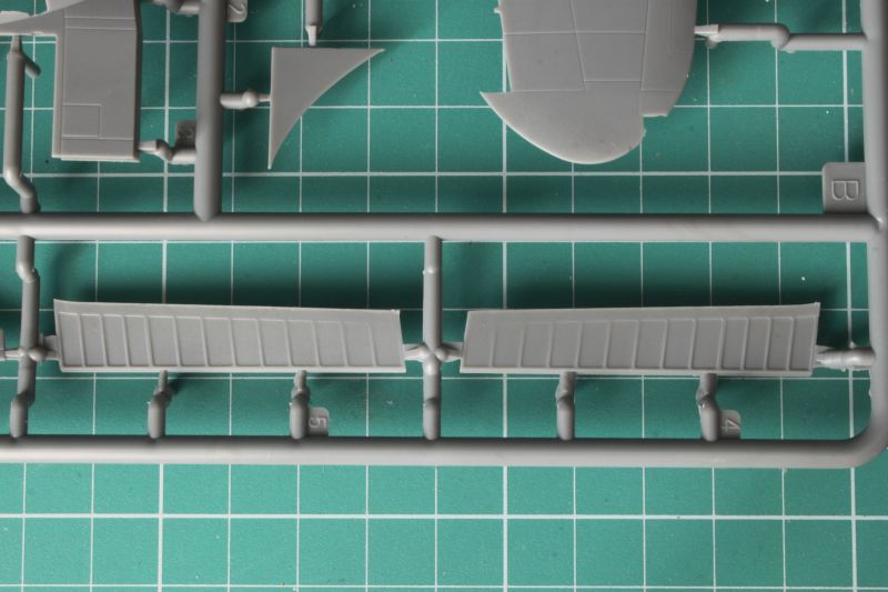 Połówki płatów, podłoga kabiny, lotki i klapy to zawartość dwóch kolejnych ramek (A i B). Także tu linie podziału są poprowadzone równo i delikatnie i jedyne do czego można mieć uwagi, to podobne jamki pojawiające się tym razem na lotkach. W tym zakresie aktualne są uwagi dot. usterzenia pionowego. Klapy mają zaznaczoną fakturę, ale nie ma jej natomiast górnej połówce płata. Można przejść nad tym do porządku dziennego, jednak, jak ktoś chce mieć wiernie odtworzony ten element konstrukcji samolotu w budowanym modelu, powinien sięgnąć po blaszki Parta.
