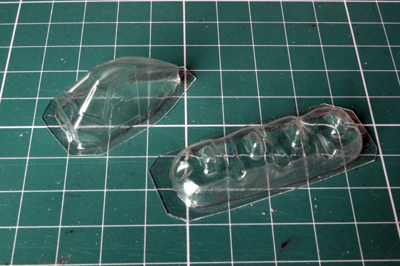 W pudełku pośród torebek znajduje się także tajemnicze zawiniątko – foliowa torebka z bąbelkową folią w środku. W tę folię zawinięte jest oszklenie, czyli osłona kabiny i klosze reflektorów, które zamontujemy w krawędziach natarcia. Przezroczyste elementy wykonano metodą vacu. Jest ono cienkie i dość delikatne, dlatego trzeba będzie bardzo uważać przy wycinaniu, tym bardziej, że dysponujemy tylko jednym kompletem oszklenia.