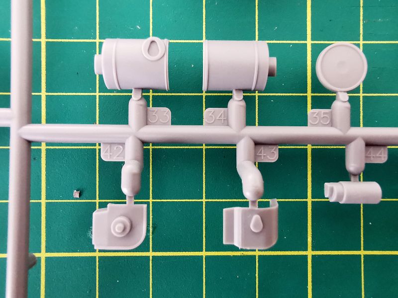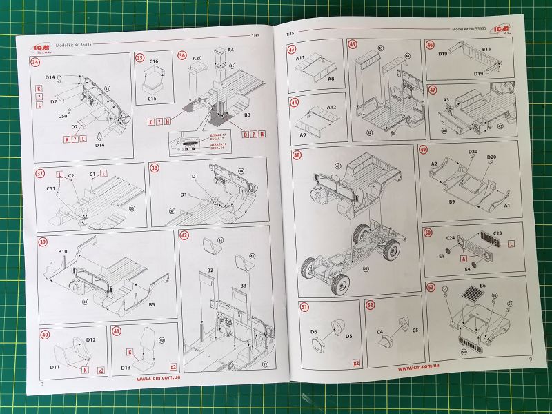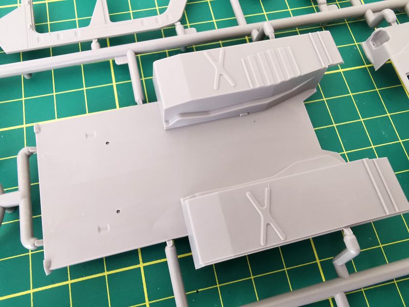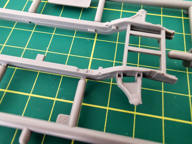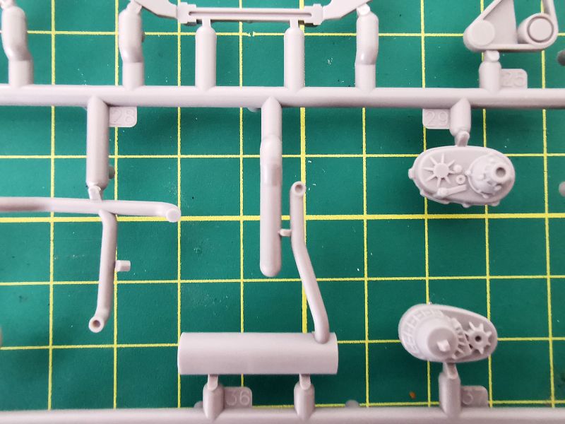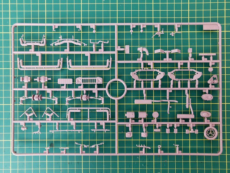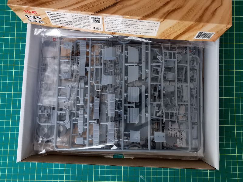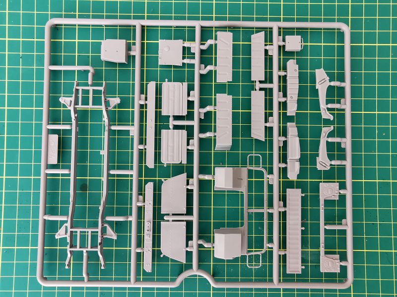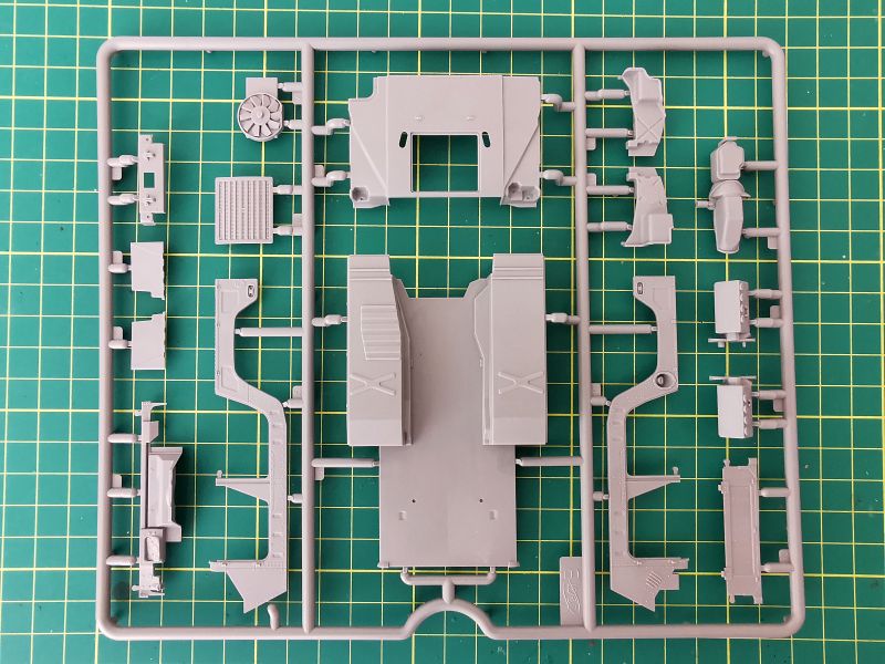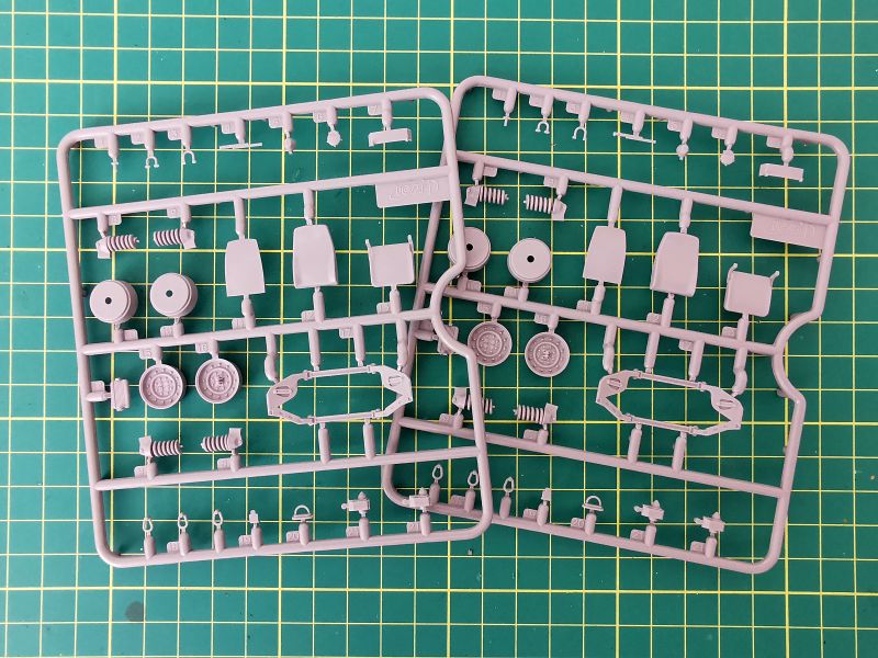 Zasadnicze elementy zestawu zostały rozmieszczone na pięciu ramkach z szarego polistyrenu, takiego jakiego to ICM używa od dawna. Producent ten rozmieszcza poszczególne detale na wypraskach, jak akurat ma miejsce. Dlatego też na ramce oznaczonej jako „A” znajdziemy zarówno podzespoły podwozia, jak i nadwozia pojazdu.