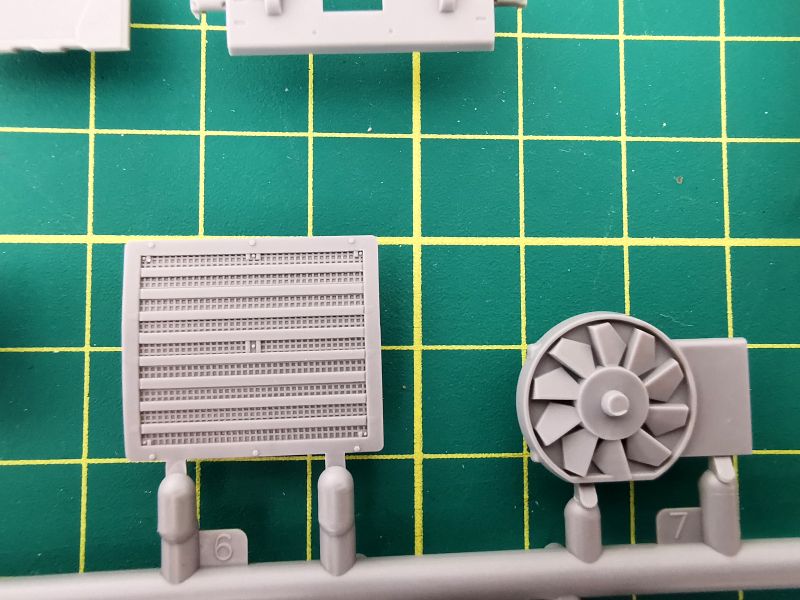 Ramka „C” jest największa w całym zestawie i znajduje się tam cała drobnica, bez względu na umiejscowienie w modelu, mamy zatem podzespoły zawieszenia, silnika z układem wydechowym nadwozia i kabiny. Jest tam też charakterystyczny dla tych pojazdów grill.