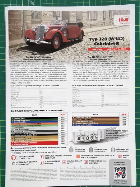 Jest rzeczą powszechnie wiadomą, że firma ICM dobrze czuje się w tematach motoryzacyjnych. Nie mam tu jednak na myśli ciężarówek i innych pojazdów stricte militarnych, ale pojazdy cywilne i to z czasów, kiedy samochody osobowe były dziełami sztuki. Ukraiński producent ma w swoim portfolio kilkanaście pozycji tego typu w skalach 1/24 oraz 1/35. Zawsze interesowało mnie, jak one są wydawane i kiedy nadarzyła się okazja, skwapliwie ją wykorzystałem. Tą okazją było wydanie modelu niemieckiego kabrioletu z okresu międzywojennego, a dokładnie chodzi o Typ 320 (W142).